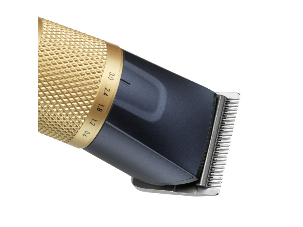 Stylový a výkonný zastřihovač vlasů s uhlíkovo-titanovými čepelemi pro dlouhotrvající přesnost při zastřihování. Výjimečný výkon lithium-iontové baterie poskytuje až 160 minut bezdrátového provozu a perfektní výkon i při nižší úrovni nabití. 3 hodiny rychlého nabíjení. Snadné nastavení a ovládání délky řezu. Se 45 nastaveními délek, od 0,6 do 28 mm. Odnímatelná omyvatelná čepel pro snadné čištění. S 8 hřebenovými nástavci v balení.