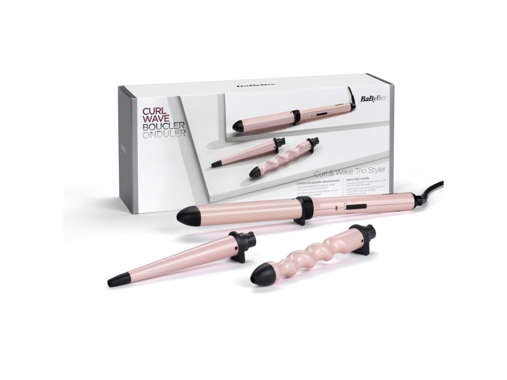 Stylová multifunkční kulma od BaByliss pro jednoduché vytváření různých stylů vln a loken s výsledky jako ze salónu. V balení se 3 vyměnitelnými vlnícími nástavci, tepluvzdornou rukavicí a nahřívací podložkou.