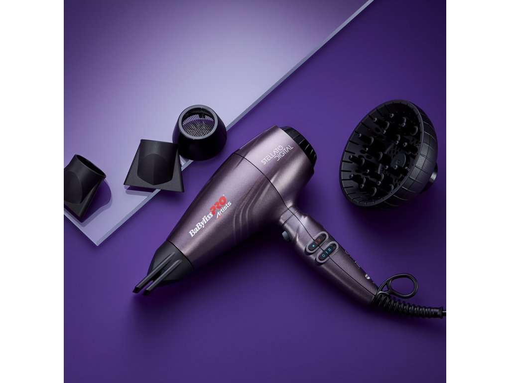 Profesionální luxusní fén vyvinutý ve spolupráci Babyliss Pro a Ferrari s unikátním bezuhlíkovým motorem se životností až 10.000 hodin. Proudění a rychlost vzduchu jsou neustále pod kontrolou, což zaručuje maximální stabilitu. Výkon nekolísá a vibrace se výrazně snižují. Navíc má STELLATO DIGITAL senzor, který rozezná, když je nasazená vzduchová tryska a automaticky přizpůsobí rychlost a proudění vzduchu.