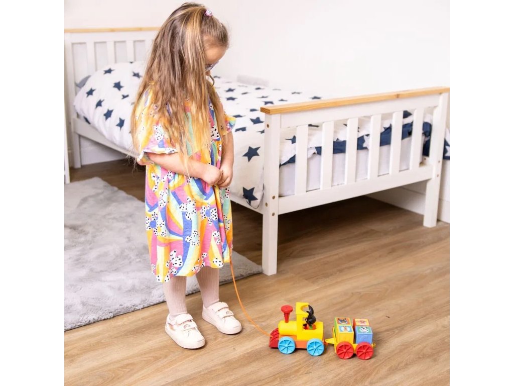 Vagonky jsou kostky s obrázky, které lze vyjmout a hrát si s nimi zvlášť. Tato souprava vláčku má více možností hry, protože obsahuje tahač a 4 stavební bloky. Učební dovednosti: jemná motorika, koordinace očí a rukou, tvary a barvy, písmena a slova, řešení problémů, kreativita, sluchové vnímání, představivost, příčina a následek. Vhodné pro děti od 12 měsíců.