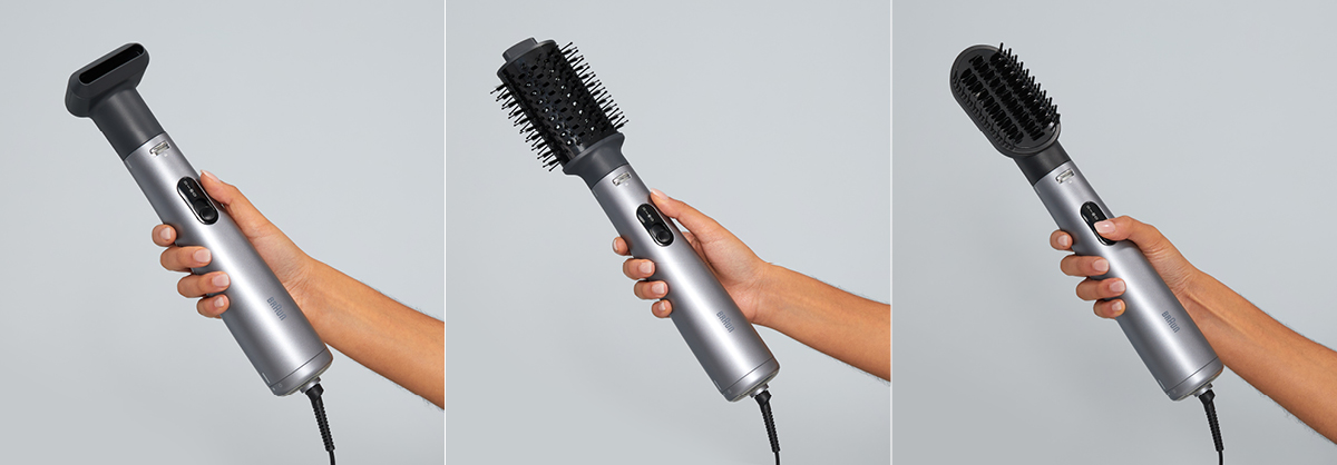 Osvědčené, precizně navržené stylingové příslušenství poskytuje optimální výkon, kontrolu a šetrnou péči při každodenním stylingu. S ergonomickou vysoušecí tryskou pro výkonné vysoušení, oválným horkovzdušným kartáčem pro objem (na všech délkách vlasů) a inovativním plochým kartáčem pro jemné narovnávání a uhlazování.