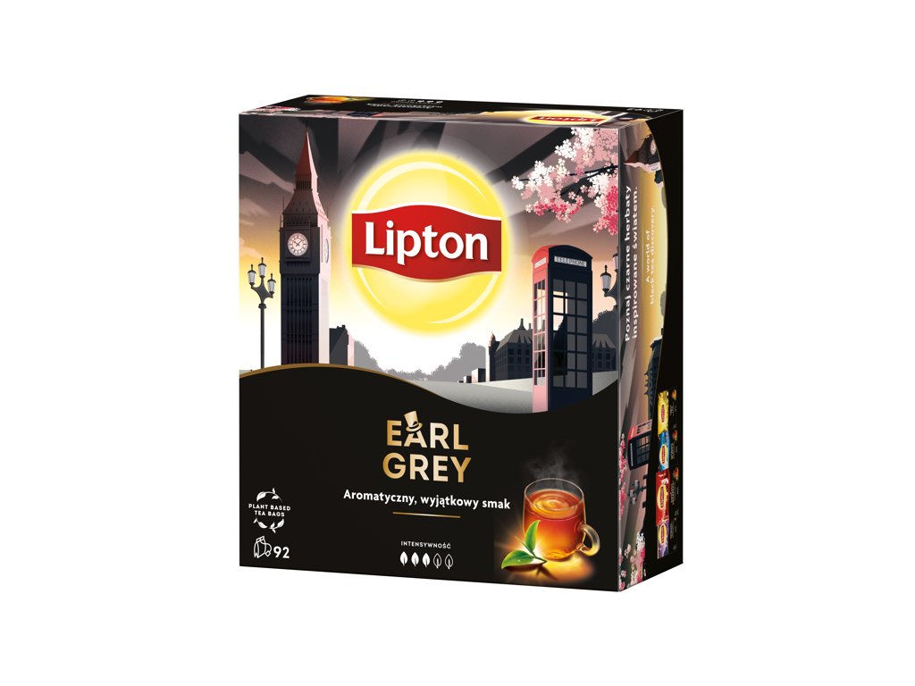 Lipton Earl Grey 92 sáčků x 1,5g je balení čaje od značky Lipton, které obsahuje 92 sáčků čaje Earl Grey, každý o hmotnosti 1,5 gramu.