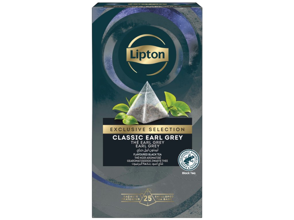 Lipton Pyramid Earl Grey v balení s 25 sáčky po 1,8g je sofistikovaná směs černého čaje s esencí bergamotu, zabalená v pyramidových sáčcích pro maximální chuťový zážitek.