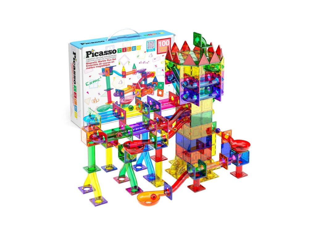 Obsahuje barevné průhledné magnetické dlaždice, rampy a trubice.Umožňuje stavbu 3D kuličkových drah. Děti mohou vytvářet vlastní závodní tratě a sledovat, jak kuličky projíždějí zatáčkami a pády. Učení skrze hru zahrnuje pohyb, gravitaci a princip příčina–následek (STEM dovednosti).
