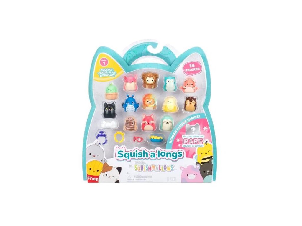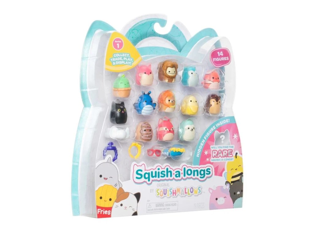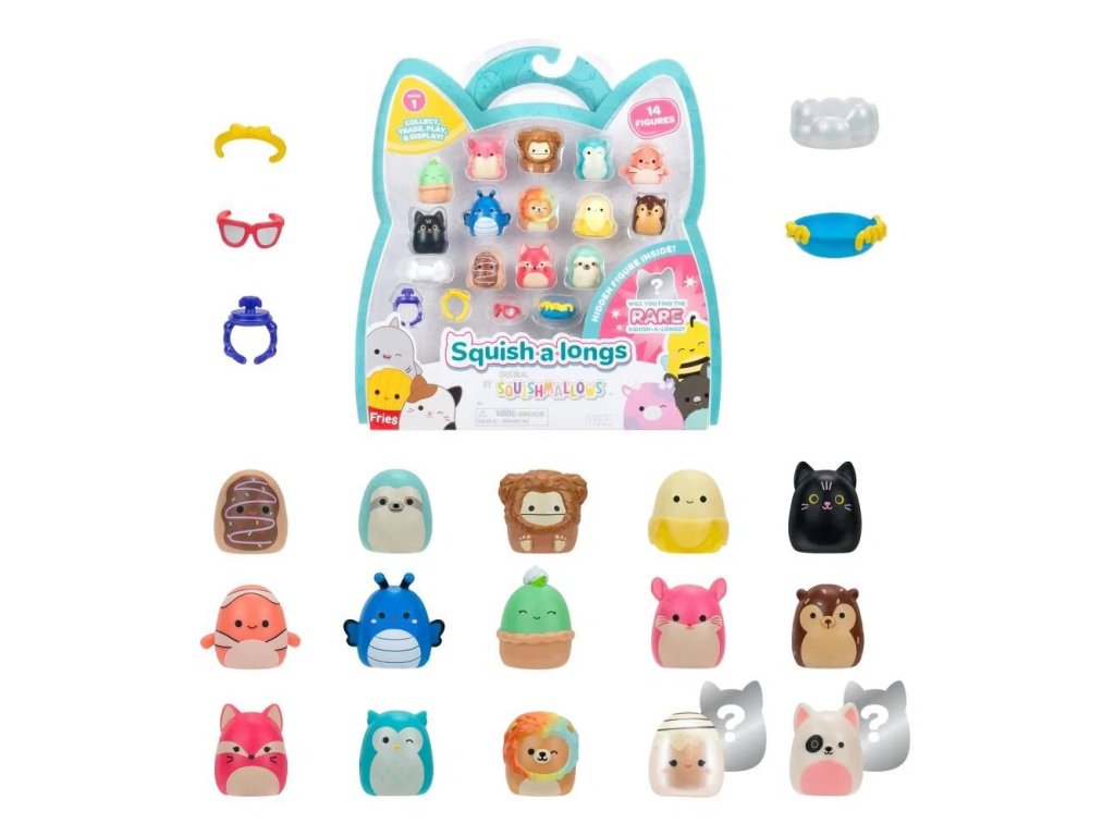Sada obsahuje roztomilé Squish a long, prstýnek na připevnění postaviček a příslušenství a dvě tajné figurky